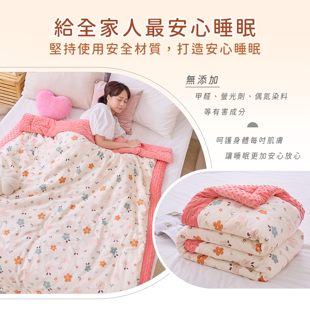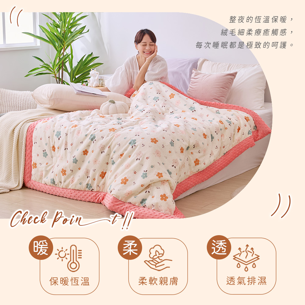 ◇商品規格 ▪ 內容物:Heat Fi 可水洗韓系純棉豆豆絨被x1 ▪表布A面:100%純棉(200織精梳棉) ▪表布B面:100%聚酯纖維(3D立體豆豆絨) ▪填充物:20%大豆纖維+80%聚酯纖維(羽絲絨) ▪ 尺寸: 150x200cm (±5%) ▪ 重量: 2.3KG(±3%) ▪ 產地:中國 ◇注意事項 ▪ 洗滌方式:30度可水洗/不可漂白/不可熨燙/不可烘乾/不可乾洗 ▪ 清洗時,請勿將洗劑直接倒於布料上,且確保清潔劑完全溶解於水中再放入,以免造成布料褪色 ,洗後置通風處自然陰乾即可。 ▪ 洗滌時,以低溫柔洗模式機洗,請務必使用洗衣袋,切勿使用衣物柔軟精、漂白劑、香氛劑洗滌,商品會導致顏色不均或嚴重褪色。 ▪ 個人衛生用品,如經拆封使用、下水洗滌、沾染各種氣味或拆解以致缺乏完整性及失去再販售價值時,恕不接受退換貨 。 ▪ 本商品不含拍攝道具,請以「產品內容」為主。 ▪ 網頁圖片因拍攝關係,與實品略有差異,實際顏色以出貨商品為準。