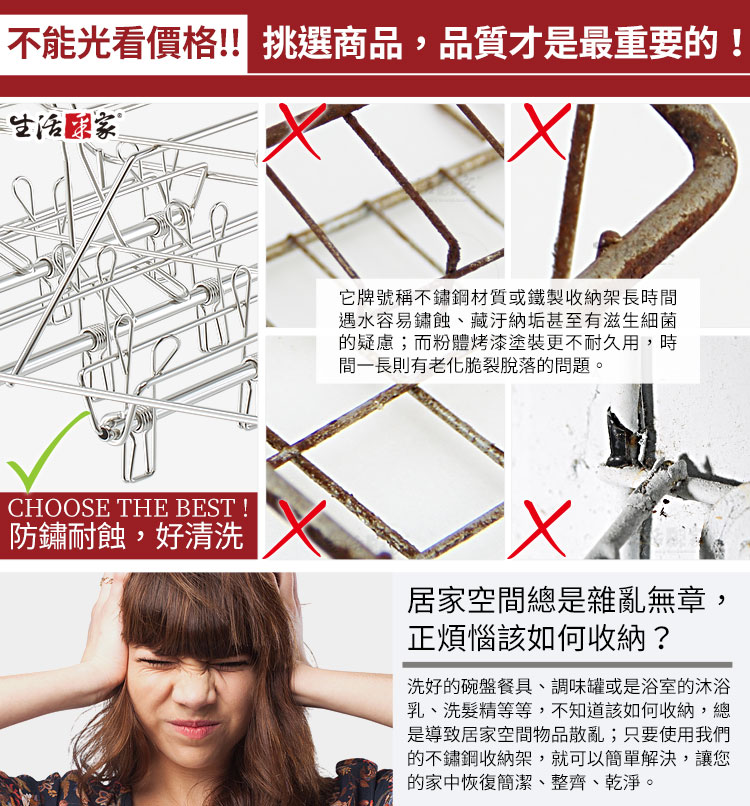 採SUS304 (18-8)高品質不鏽鋼製造,無生鏽疑慮,為同質性產品能找到的最高使用材料等級 ,製造商為已有二十多年經驗的外銷廠商,品質保證。