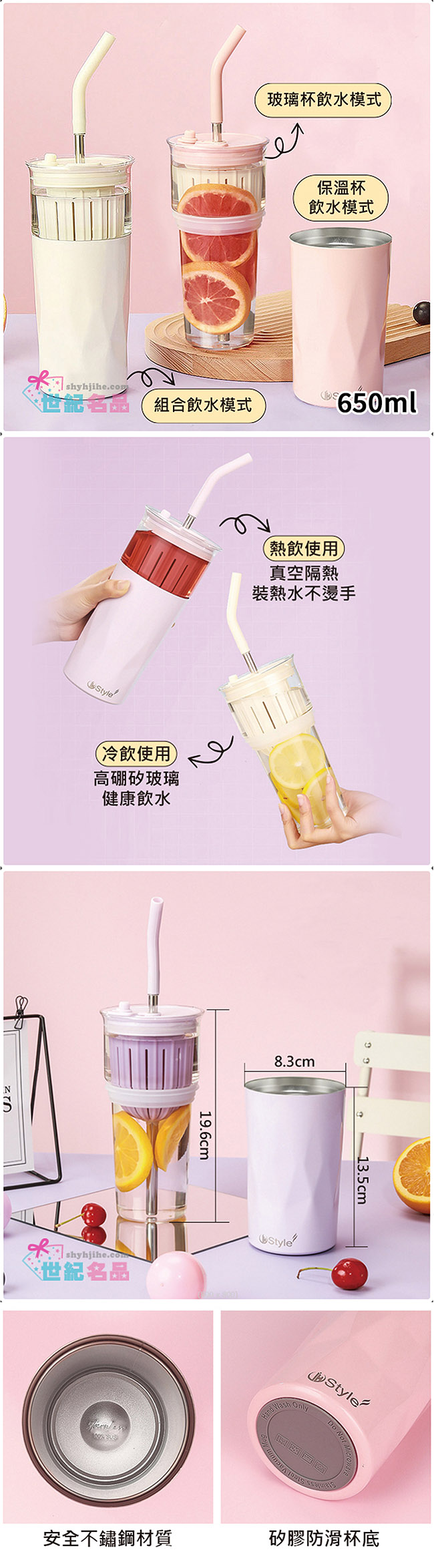 DOLEE 炫彩玻璃不鏽鋼隨行杯650ml附吸管(顏色隨機出貨) W81 ■ 可組合飲用模式,也可分開為玻璃杯和保溫杯 ■ 冷飲使用-高硼矽玻璃健康飲水 ■ 熱飲使用-真空隔熱,裝熱水不燙手 ■ 安全304不鏽鋼材質 ■ 矽膠防滑杯底 ■ 自用送禮都適用 ■ 環保愛地球