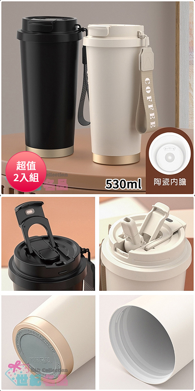 DOLEE 316陶瓷內膽雙飲隨行咖啡杯530ml(顏色隨機出貨) W80 超值2入組 ■ 316不鏽鋼內膽+陶瓷塗層 ■ 雙飲設計,直飲和吸管兩用 ■ 矽膠防滑杯底 ■ 自用送禮都適用 ■ 環保愛地球