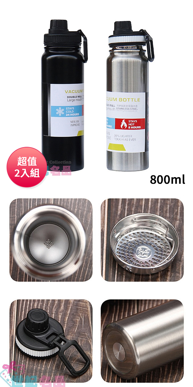 DOLEE 304不鏽鋼廣口真空運動水壺800ml附茶濾(顏色隨機出貨) W55 超值2入組 ■ 304不鏽鋼內膽 ■ 304不鏽鋼內茶濾 ■ 直飲杯口,飲用方便 ■ 手提杯蓋設計,攜帶便利 ■ 自用送禮都適用 ■ 環保愛地球