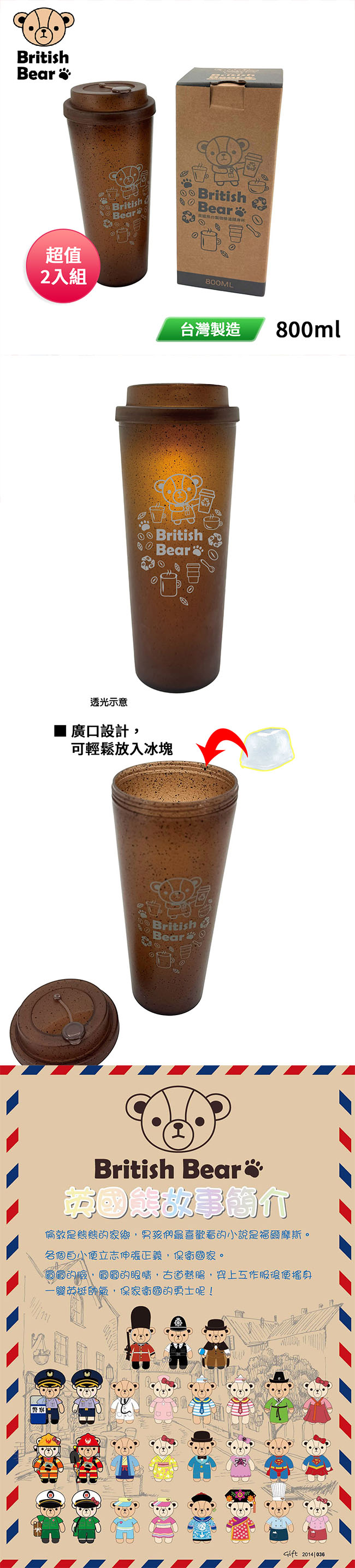 英國熊 台製咖啡渣隨身杯800ml BC-079B 超值2入組 ■ 自備水瓶,環保愛地球 ■ 廣口設計,可輕鬆放入冰塊,清洗方便 ■ 可微波加熱&冷藏 ■ 杯身輕巧、攜帶方便