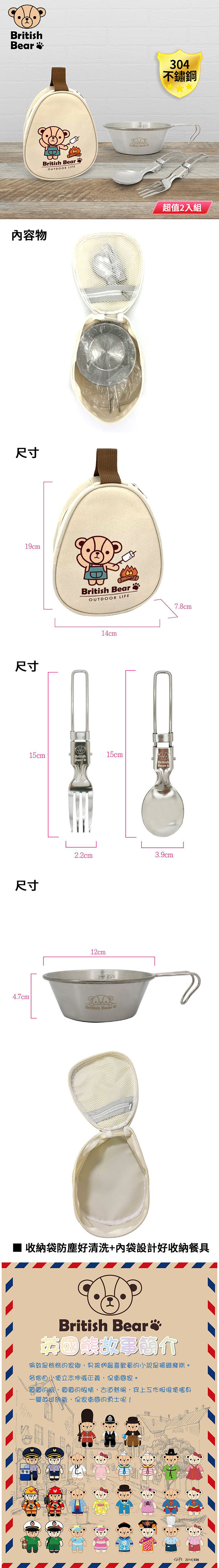 英國熊 304不鏽鋼戶外餐具四件組(雪拉碗+湯匙+叉+收納袋) UP-C098 超值2入組 ■ 英國熊授權圖案商品 ■ 野營、登山、露營戶外適用 ■ 雪拉碗內刻度線標示,把手設計手拿取 ■ 304食品級不鏽鋼,快速折疊餐具方便使用 ■ 收納袋防塵好清洗+內袋設計好收納餐具