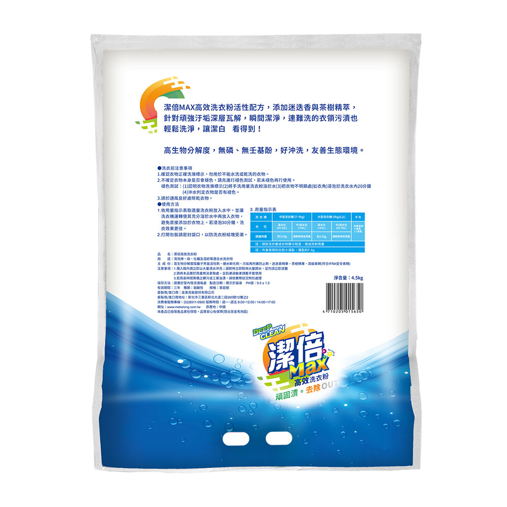 潔倍 Max洗衣粉 4.5kgx4入/箱(高效)