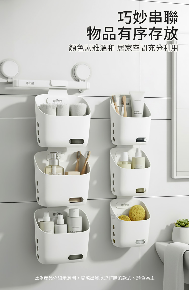 ✅ 可以串接、多籃延伸,垂直空間加倍利用 🔗 可自由往上延伸,像積木一樣組合。 浴室三層架、廚房調味塔、小件衣物收納串,一籃搞定。