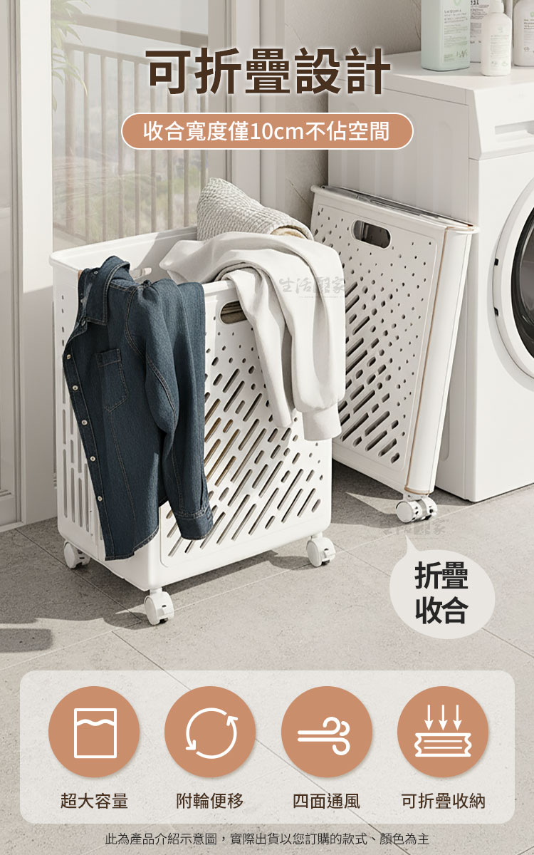 Q2:裝滿濕重的衣物會不會推不動或輪子壞掉? A2:產品採用加厚高強度材質與耐重萬向滑輪設計,結構穩固,即使裝滿衣物也能流暢推行。