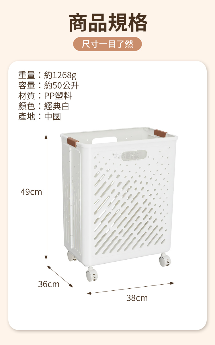 ✅ 萬向滑輪|推拉超省力 滿籃衣物也能輕鬆移動,從房間到洗衣間,一推就走,不傷腰不費力。