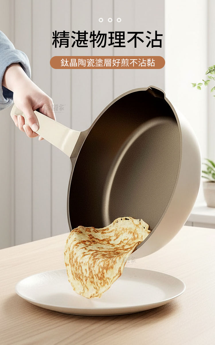 👩🍳告別廚房戰場,從選對一把好鍋開始 是否也曾為了沾鍋燒焦而苦惱?或是鍋具太重提不動、薄底容易變形導致受熱不均?身為精緻生活的追求者,您值得擁有一把能解決所有痛點的夢幻鍋具。生活采家「鈦陶瓷不沾單把平底鍋」,將航太級「鈦」金屬與陶瓷 塗層完美融合,不僅是鍋,更是您廚房裡的科技與溫度。✨