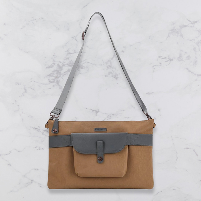 BAGMIO 手拿斜背包(茶金)附背帶 ■ 台灣原創品牌 ■ 420D水洗尼龍輕量防潑水,十字壓紋牛皮 ■ 手拿包可收納A4文件、10吋平板 ■ 手拿包與小物收納包可相結合使用 ■ 附有可拆式寬版肩背帶,手提、肩背、斜背,一包多用 ■ 送禮自用皆適合