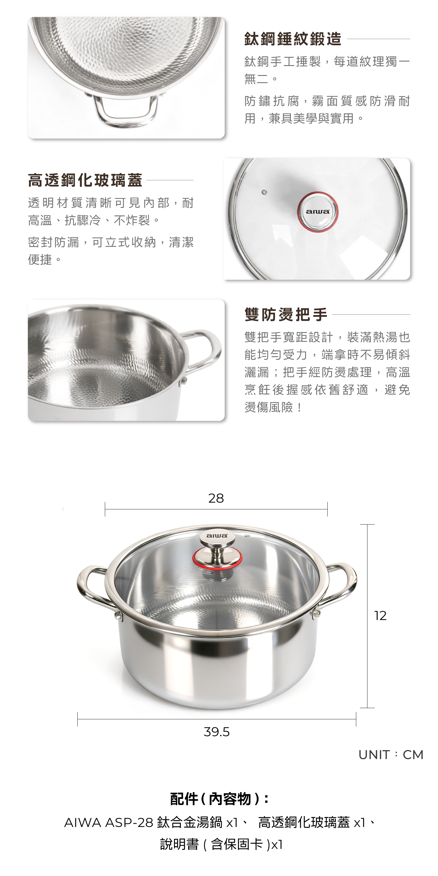 【AIWA 日本愛華】28cm 鈦合金湯鍋 ASP-28