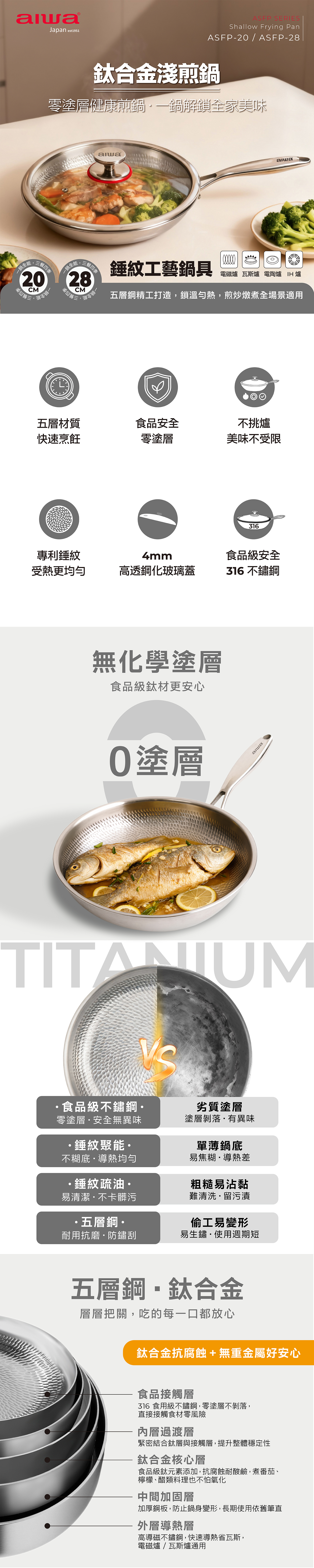 【AIWA 日本愛華】28cm 鈦合金淺煎鍋 ASFP-28