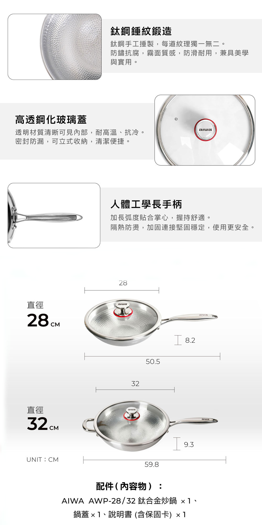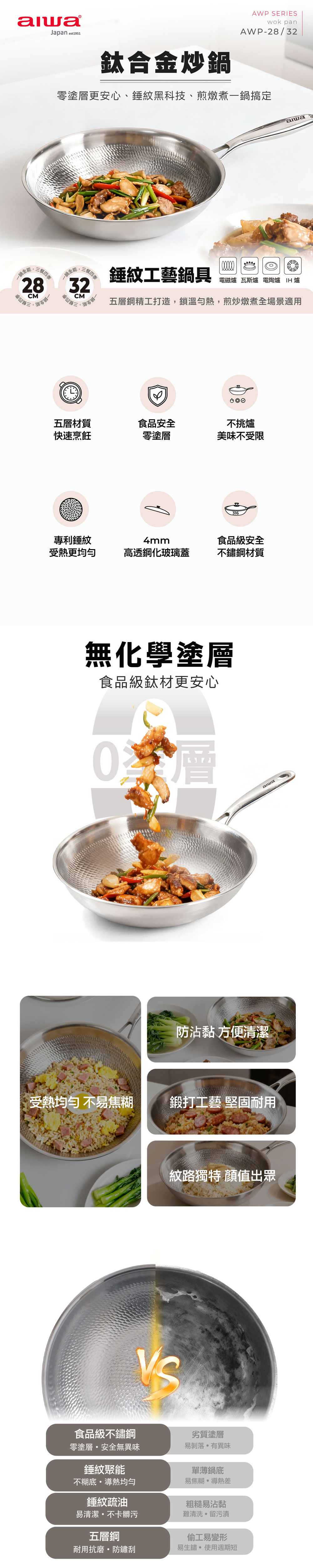 【AIWA 日本愛華】32cm 鈦合金炒鍋 AWP-32