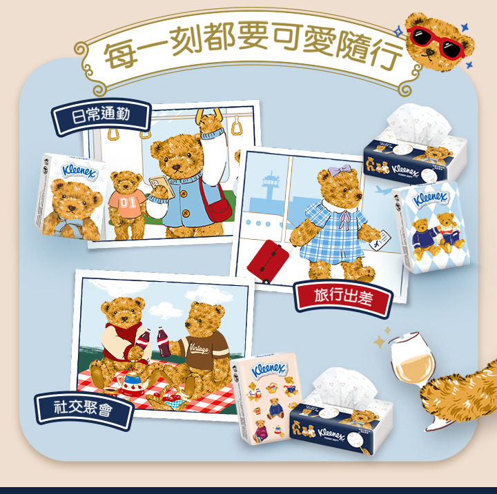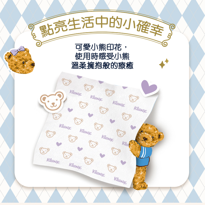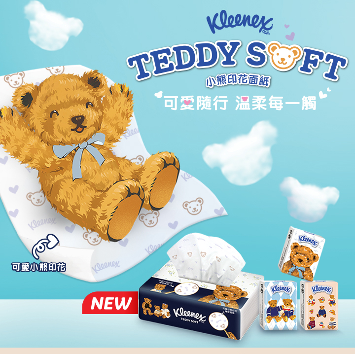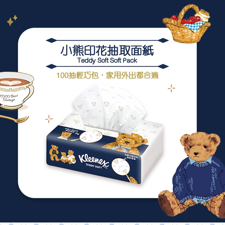 舒潔 健力氏 Teddy Soft 小熊印花抽取面紙(3層)100抽6包 迷你尺寸(19cmx15.5cm),隨身輕巧便利