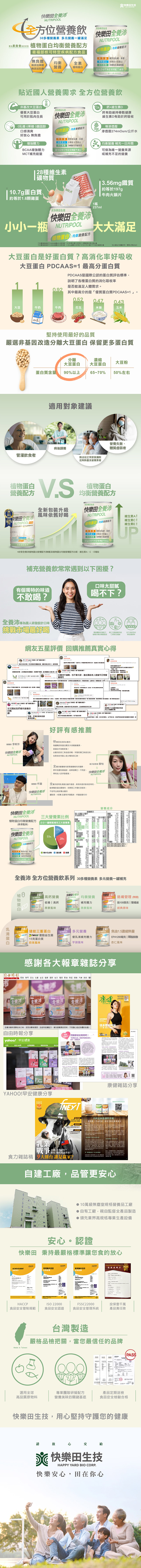 1.商品組合/規格:237ml, 24入/箱 2.商品品名:快樂田全養沛- 植物蛋白均衡營養配方(全素/無添加果糖/燕麥風味) 24入 3.商品重(容)量:0.6kg